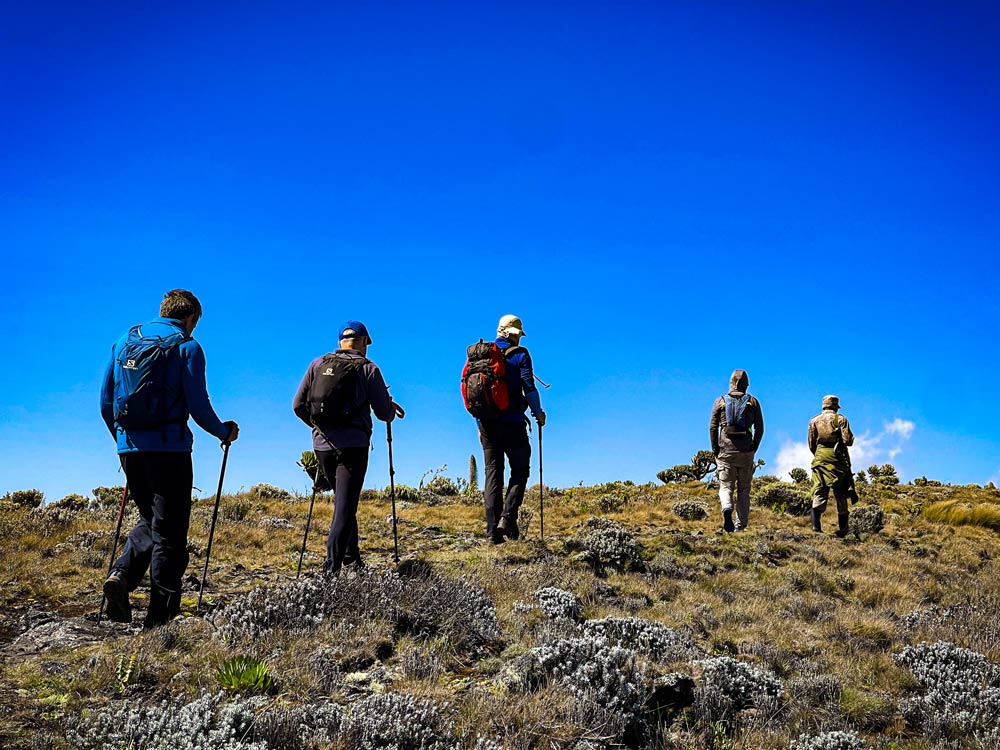 Nedturen går via idylliske Jackson’s Pool, før stien fører videre til Mwongogo Cave Camp på 3800 moh. Her settes teltleiren opp, og dagen avsluttes etter en totalt 16 kilometer lang etappe fylt med høydepunkter både i natur og utsikt.