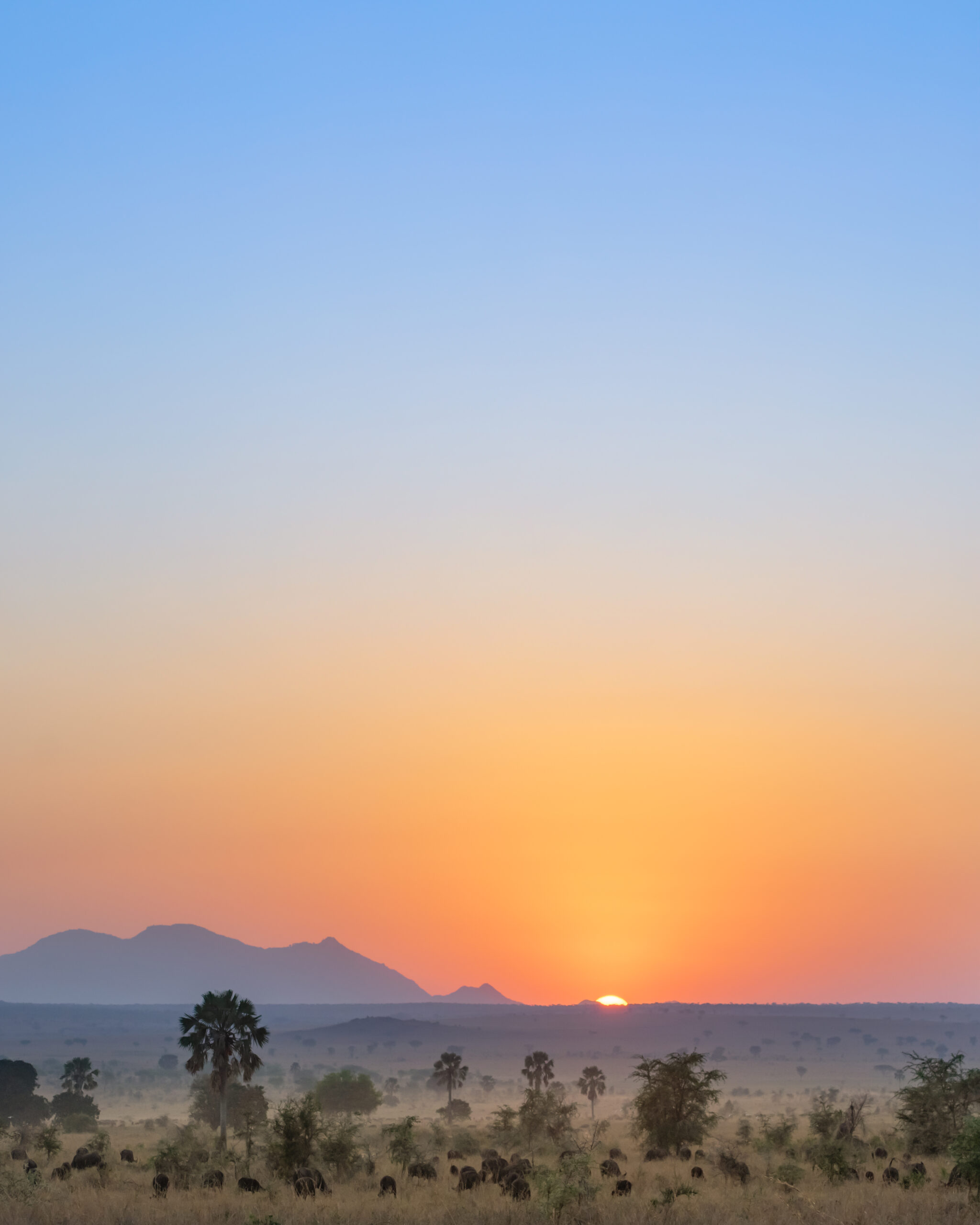 Dagen starter tidlig for å få med seg soloppgangen over savannen, når de store kattedyrene er mest aktive. Kidepo er hjem til løve, leopard og gepard, og med litt flaks kan man både se og høre dem på nært hold. Parken er også kjent for sine enorme bøffelflokker – i noen områder kan flokkene telle opptil 2 000 dyr – i tillegg til sebra, giraff, elefant, eland, 12 andre antilopearter, flere primater og et rikt fugleliv.